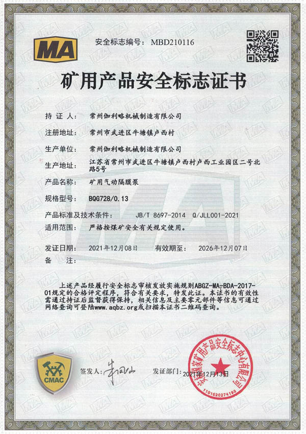 • 礦用安全標志證書-BQG170/0.3